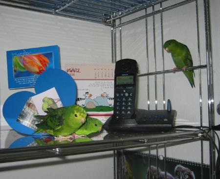 Scheint so, als ob die beiden Jungs den Jungspund in ihrer Mitte aufnehmen würden... naja... das war ja auch noch der Übergangskäfig... und hier hatte Charlie Heimrecht! Da müssen die beiden sich schon gut benehmen ;-)