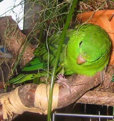 Oh... das war wohl ein bisschen zuviel "Nähe", denn auch Sammy büchst vor der Digicam aus und sucht das Weite. Er fliegt zu seinem Kumpel Moritz, der es sich am Telefon gemütlich gemacht hat und allmählich "auftaut". Leiden-schaftlich widmet er sich seiner täglichen Gefiederpflege...